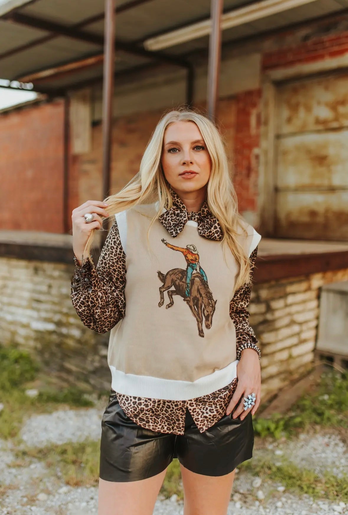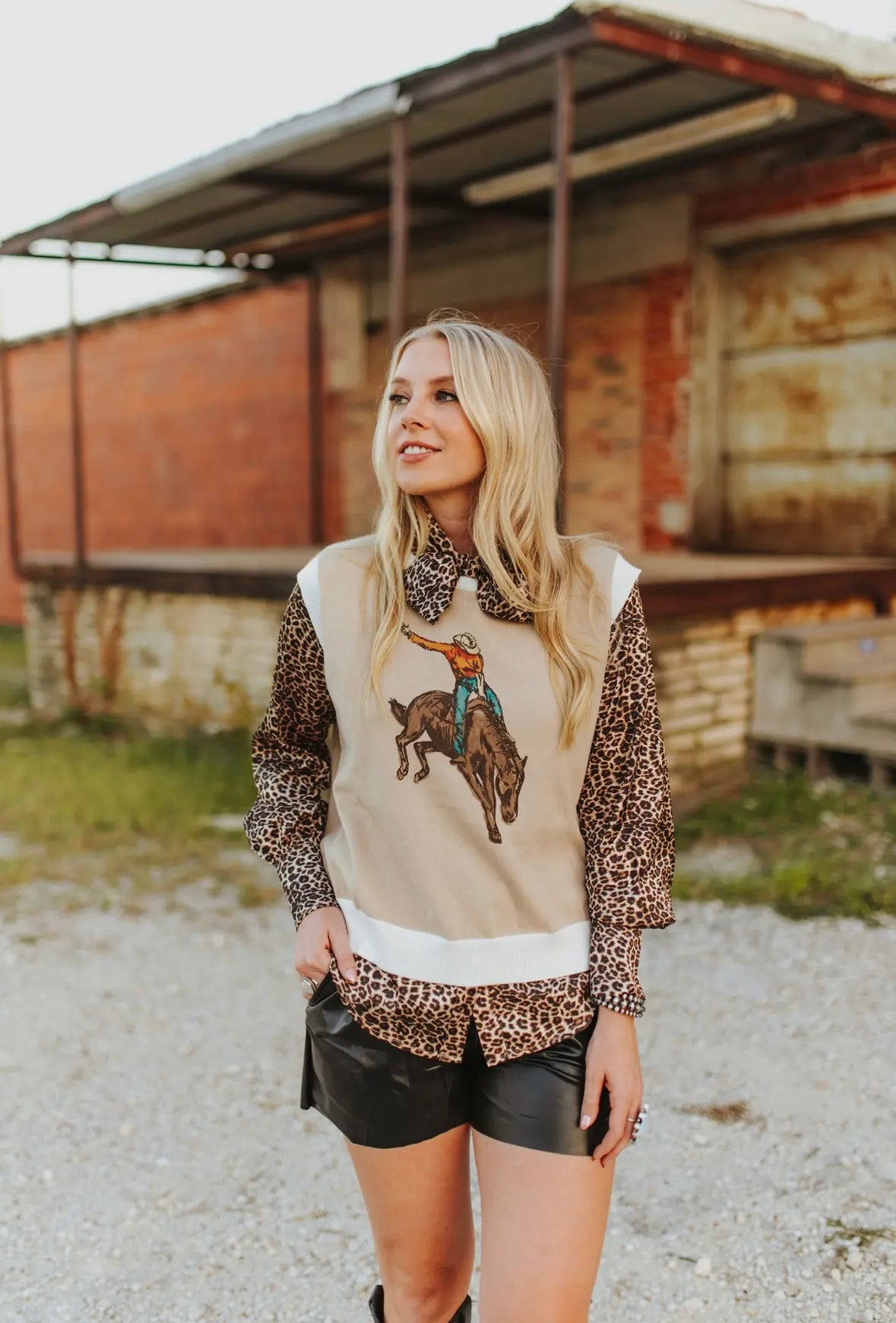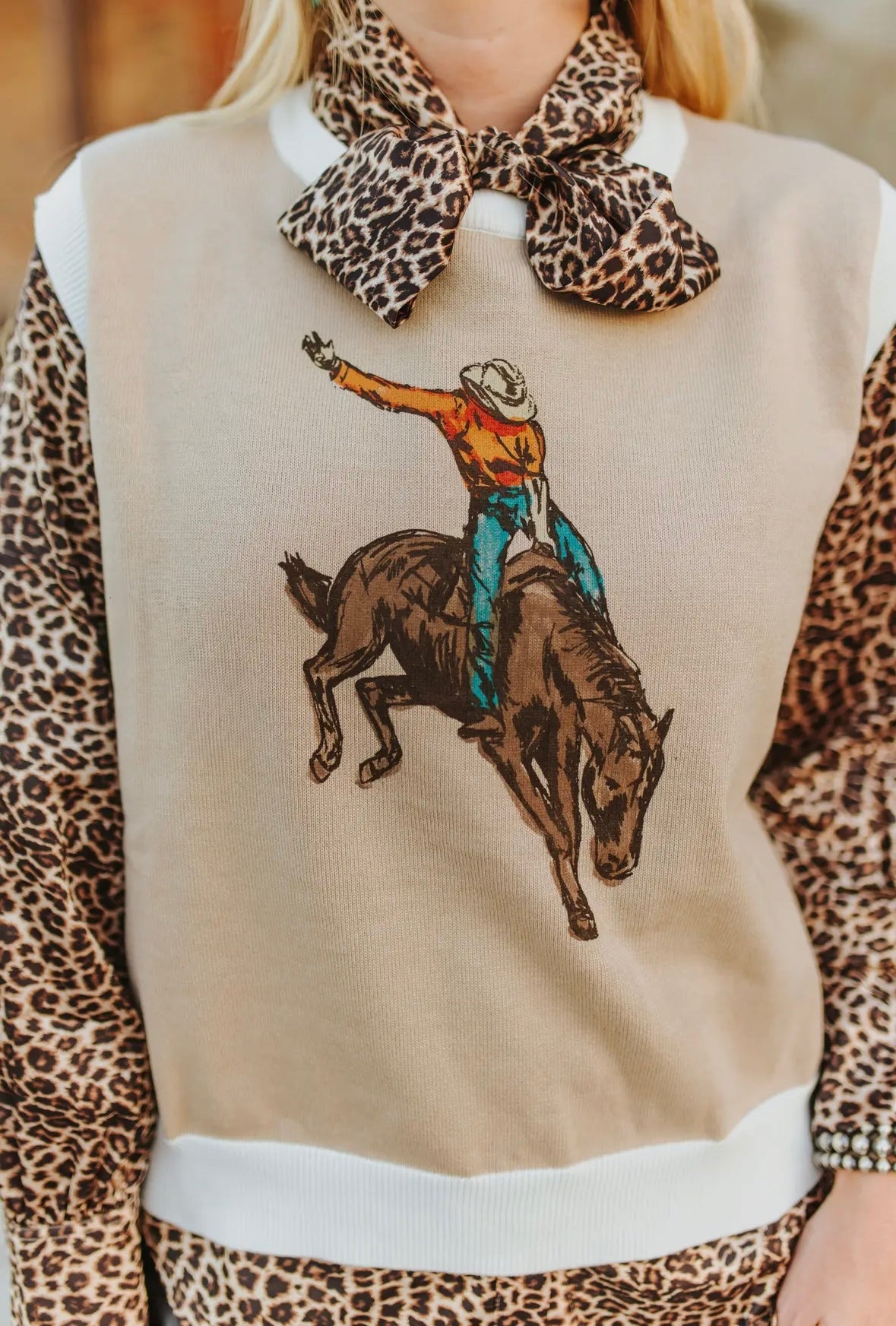 Get ready to turn heads in our A Million Bucks western layering sweater! This sleeveless piece will add a touch of western flair to any outfit, making you stand out from the crowd. With its unique design and comfortable fit, you'll feel like a million bucks every time you wear it!