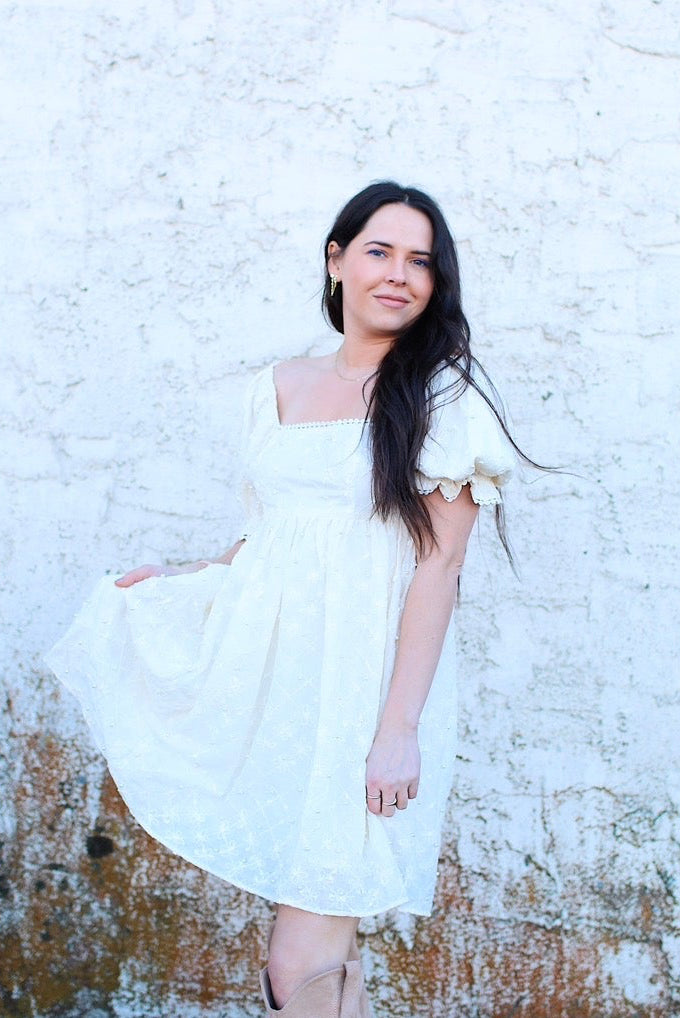 Indulge in the beauty of our Texture Flower Design Mini Dress! This dress boasts a charming balloon short sleeve and a delicate ribbon tie on the back, adding a touch of elegance to the already stunning texture flower design. Perfect for any occasion, this dress is a must-have for any fashion-forward individual.